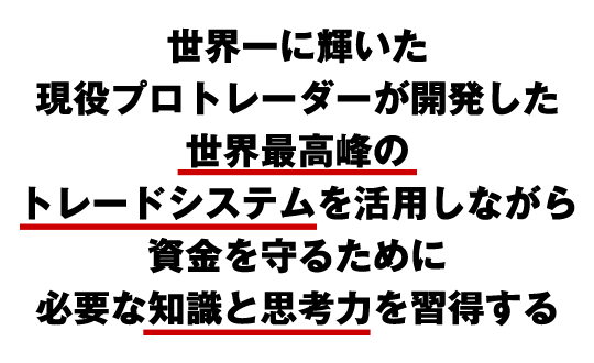 まずは『トレーダーファースト』にご参加いただき、トレードシステムで稼ぎながら、資金を守る上で必要な情報を身に